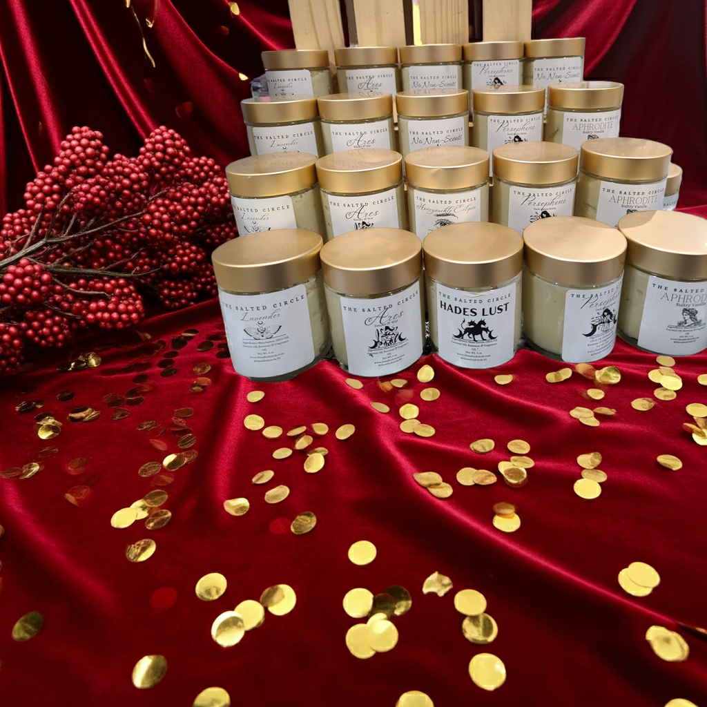 Queen Persephone - This is a beautiful blend of our signature scent with pomegranate, cider, and sandalwood for an enchanting and alluring aroma.